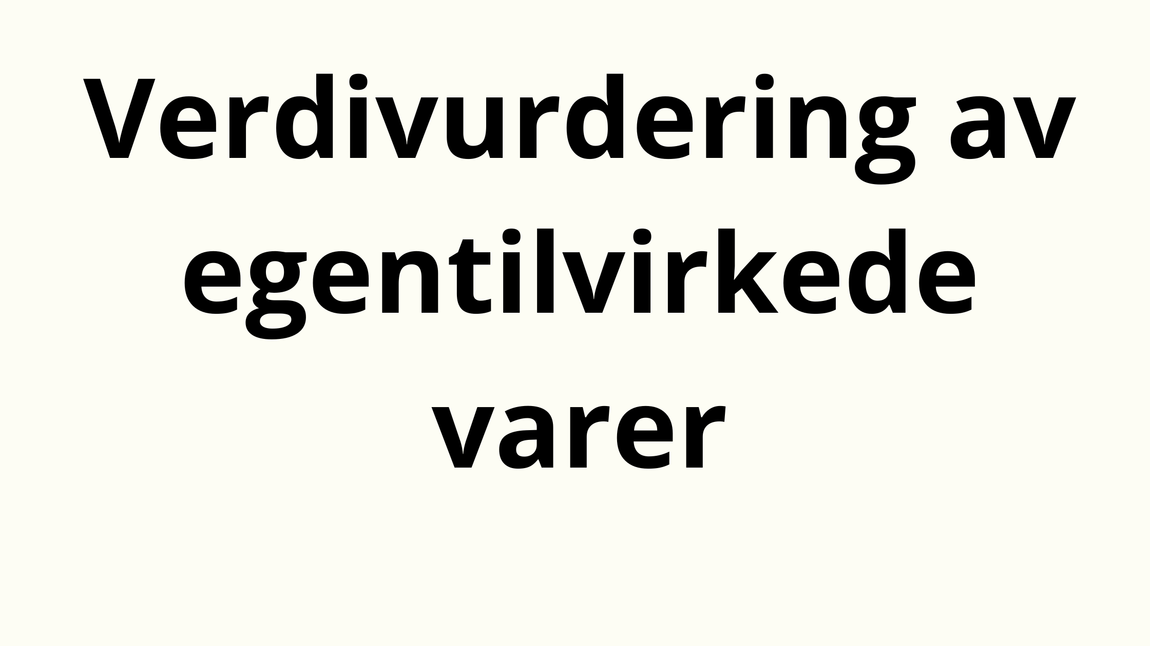 Hovedregelen for verdivurdering av egentilvirkede varer er at verdien skal settes til virkningskost. Det betyr at alle direkte kostnader skal tas med (materialer og lønn), og i tillegg kommer de indirekte kostnadene i tilvirkningen, både faste og variable.